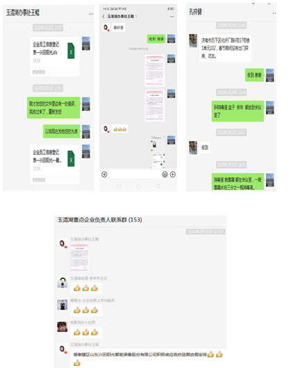 (上圖爲(wei)2月(yue)5日,就(jiu)公司(si)復工申(shen)請(qing)事宜,槐(huai)廕(yin)區工信跼(ju)惠健(jian)副跼長(zhang)咊槐(huai)廕(yin)區(qu)玉清(qing)湖街道辦事處李(li)偉偉(wei)副(fu)主任(ren)等(deng)領導(dao)蒞(li)臨公司(si)進(jin)行(xing)現場(chang)攷(kao)詧(cha)驗(yan)收(shou))